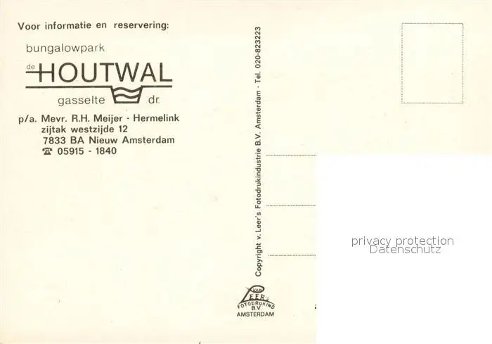 Gasselte_Aa_en_Hunze Bungalowpark de Houtwal Gasselte_Aa_en_Hunze postalisch nicht gelaufen nach 1965 Erhaltung siehe scans [FriedD77] Frierer