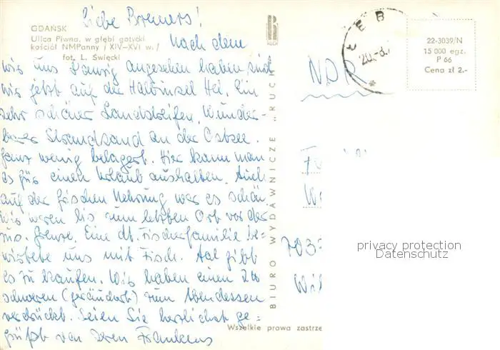 Gdansk_Danzig_PL Ulica Piwna w glebi gotiycki kosciol NMPanny postalisch gelaufen nach 1965 Erhaltung siehe scans [WerneD78] WernPID7