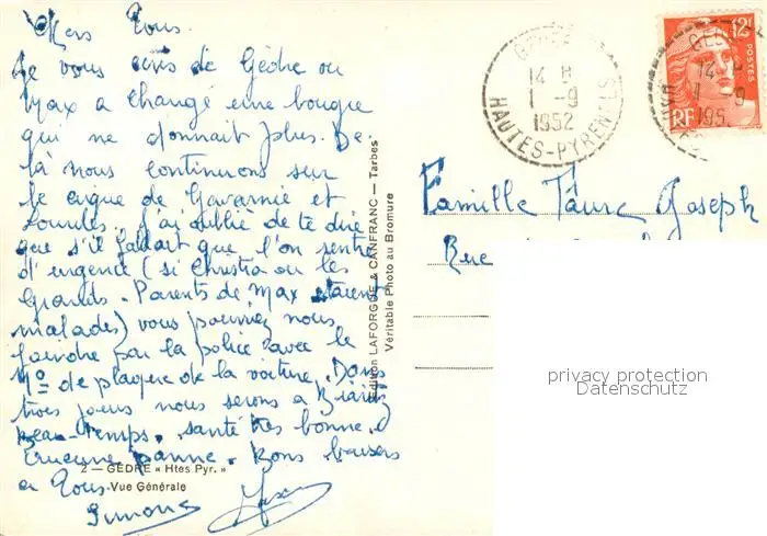 Gedre Vue generale Gedre postalisch gelaufen 1952 Erhaltung siehe scans [WerneD78] WernPID7
