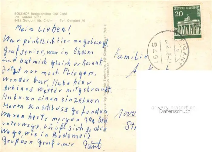 Geigant Rosshof Bergpension Cafe Geigant postalisch gelaufen nach 1965 Erhaltung siehe scans [KathaD81] Kathoren