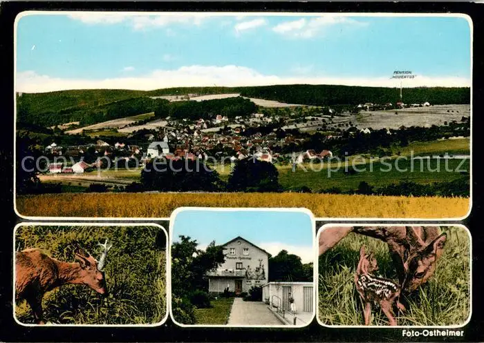 AK / Ansichtskarte Geiselbach Gesamtansicht u. Pension Hubertus Rehe Geiselbach