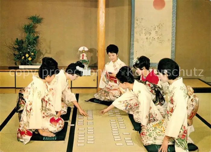 AK / Ansichtskarte Geisha Japan Poem card game Geisha