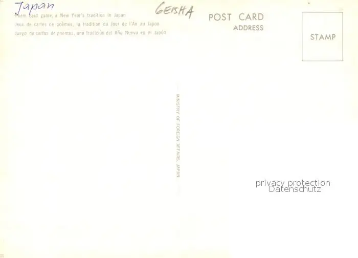 Geisha Japan Poem card game Geisha postalisch nicht gelaufen nach 1965 Erhaltung siehe scans [PaolaD17] PaolPID1
