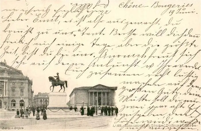 Geneve_GE Monument du General Dufour Geneve_GE postalisch gelaufen 1899 Erhaltung siehe scans [LiesaD40] LiesID40