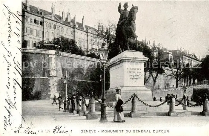 Geneve_GE Monument du General Dufour Geneve_GE postalisch gelaufen 1904 Erhaltung siehe scans [WerneD78] WernPID7