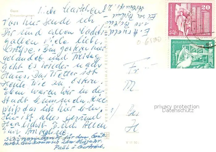 Gera Simsonbrunnen Gera postalisch gelaufen nach 1965 Erhaltung siehe scans [WerneD78] WernPID7