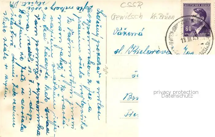 Gewitsch_Jevicko_CZ Wohnhaus postalisch gelaufen 1945 Erhaltung siehe scans [FriedD77] Frierer