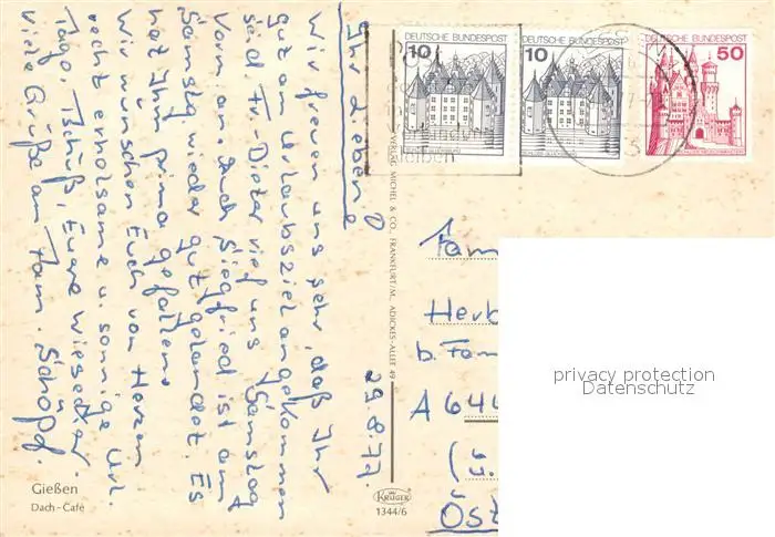 Giessen_Lahn Kategorie Alte Ansichtskarten Postkarten bx57295 Giessen_Lahn Dach Cafe Giessen_Lahn postalisch gelaufen 1977 Erhaltung siehe scans [WerneD78]