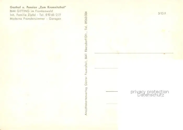 Gifting_Kronach Gasthof Kremnitzthal Gifting Kronach postalisch nicht gelaufen nach 1965 Erhaltung siehe scans [LiesaD40] LiesID40