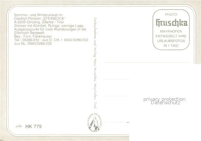 Ginzling Gasthof Pension Steinbock Ginzling postalisch nicht gelaufen nach 1965 Erhaltung siehe scans [WerneD78] WernPID7