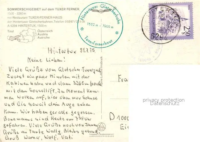 Gletscher Hintertuxer Gletscherbahn Tuxer Ferner Hintertux Gletscher postalisch gelaufen nach 1965 Erhaltung siehe scans [PaolaD17] PaolPID1