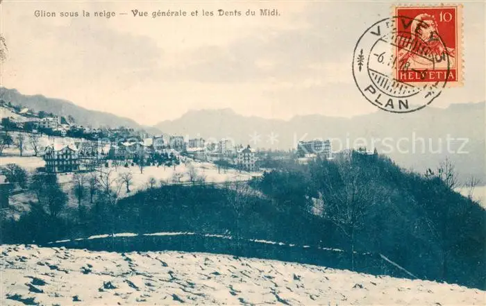 Glion Vue generale et les Dents du Midi Glion postalisch gelaufen 1918 Erhaltung siehe scans [WerneD78] WernPID7