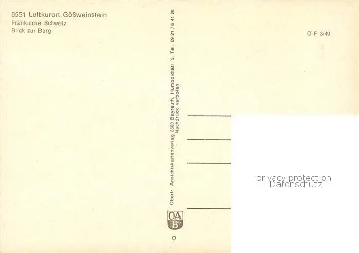 Goessweinstein mit Burg Goessweinstein postalisch nicht gelaufen nach 1965 Erhaltung siehe scans [LiesaD40] LiesID40
