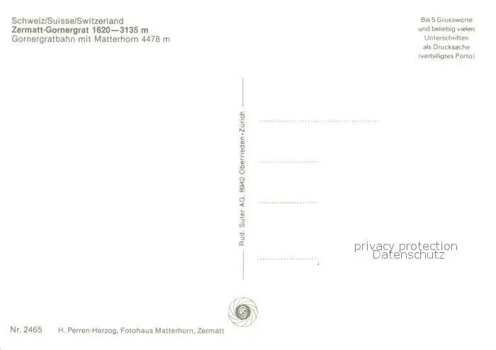 Gornergratbahn Zermatt Matterhorn Gornergratbahn postalisch nicht gelaufen nach 1965 Erhaltung siehe scans [PaolaD17] PaolPID1