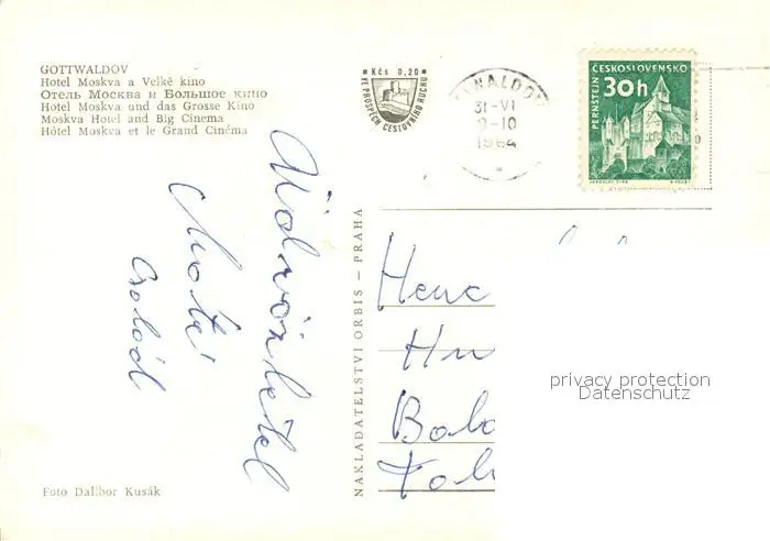 Gottwaldov_Tschechien Hotel Moskva Gottwaldov Tschechien postalisch gelaufen 1964 Erhaltung siehe scans [WerneD78] WernPID7