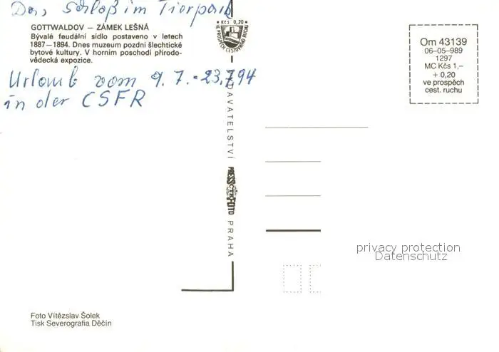 Gottwaldov_Tschechien Schloss im Tierpark Gottwaldov Tschechien postalisch nicht gelaufen 1994 Erhaltung siehe scans [LiesaD40] LiesID40