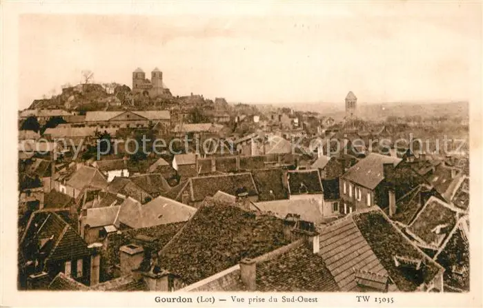 Gourdon_Lot Vue prise du Sud Ouest Gourdon Lot postalisch nicht gelaufen 1921-1965 Erhaltung siehe scans [FriedD77] Frierer