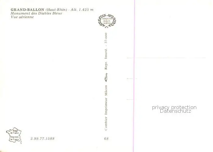 Grand-Ballon_Elsass_Vosges Vue aérienne du Monument des Diables Bleus postalisch nicht gelaufen nach 1965 Fliegeraufnahme Erhaltung siehe scans [FriedD77] Fliegeraufnahme Frierer