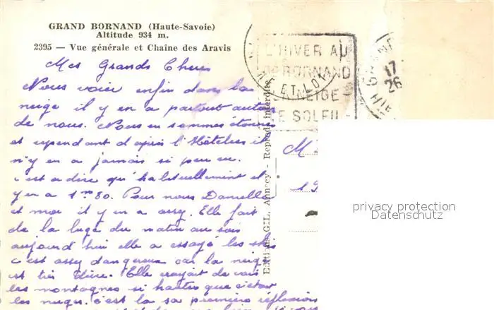 Grand-Bornand_Le Vue generale et Chaine des Aravis Grand-Bornand_Le postalisch gelaufen 1921-1965 Erhaltung siehe scans [WerneD78] WernPID7