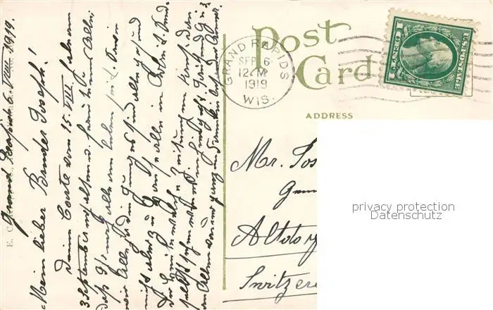 Grand_Rapids_Wisconsin_USA First and Second Streets postalisch gelaufen 1919 Erhaltung siehe scans [FriedD77] Frierer