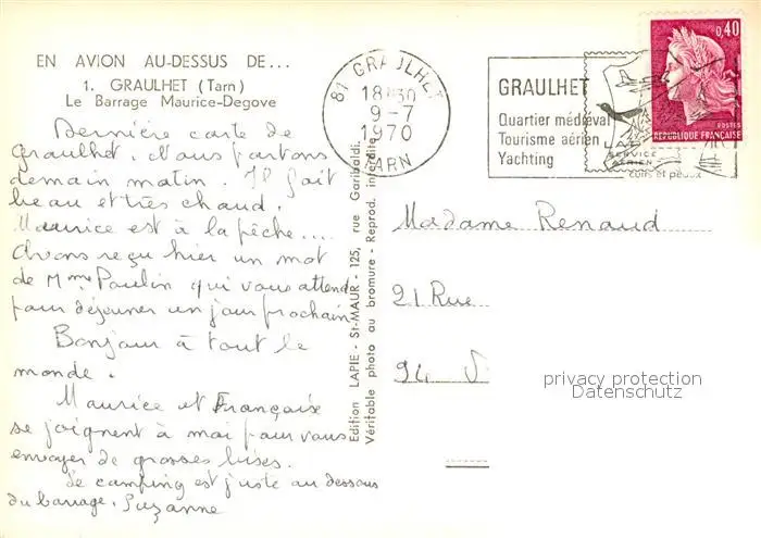 Graulhet Barrage Maurice Degove vue aérienne Graulhet postalisch gelaufen 1970 Erhaltung siehe scans [FriedD77] Frierer