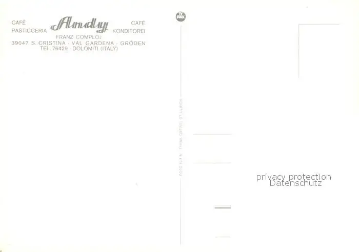 Groeden Café Konditorei Andy Groeden postalisch nicht gelaufen nach 1965 Erhaltung siehe scans [LiesaD40] LiesID40