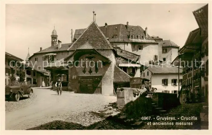 AK / Ansichtskarte Gruyeres__Gruyere_FR Crucifix et anciennes mesures