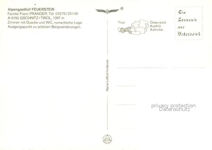 Gschnitz_Tirol Alpengasthof Feuerstein Gschnitz Tirol postalisch nicht gelaufen nach 1965 Erhaltung siehe scans [NatalD47] NataID47