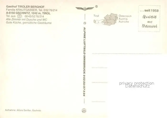 Gschnitz_Tirol Gasthof Tiroler Berghof Gschnitz Tirol postalisch nicht gelaufen nach 1965 Erhaltung siehe scans [WerneD78] WernPID7