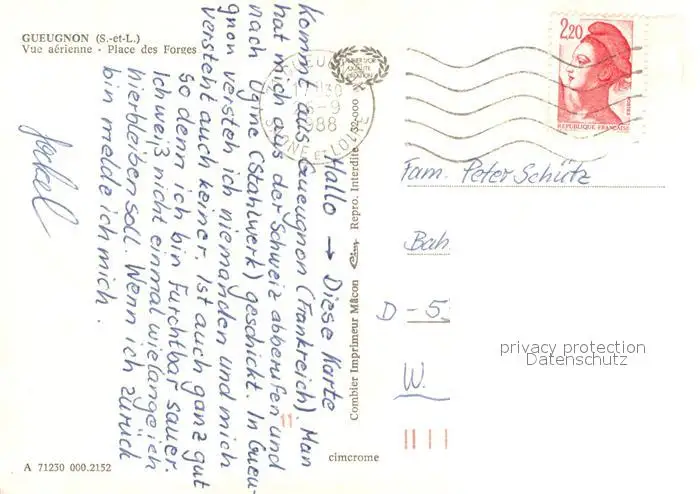 Gueugnon Place des Forges vue aérienne Gueugnon postalisch gelaufen 1988 Erhaltung siehe scans [FriedD77] Frierer