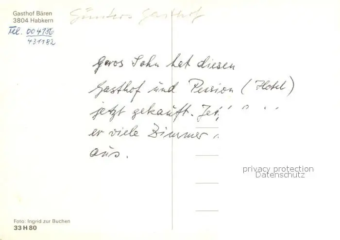 Habkern Gasthof Baeren Habkern postalisch nicht gelaufen nach 1965 Erhaltung siehe scans [WerneD78] WernPID7