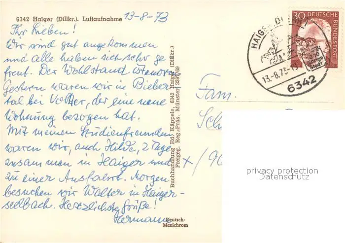 Haiger Fliegeraufnahme Haiger postalisch gelaufen 1973 Erhaltung siehe scans [FriedD77] Frierer