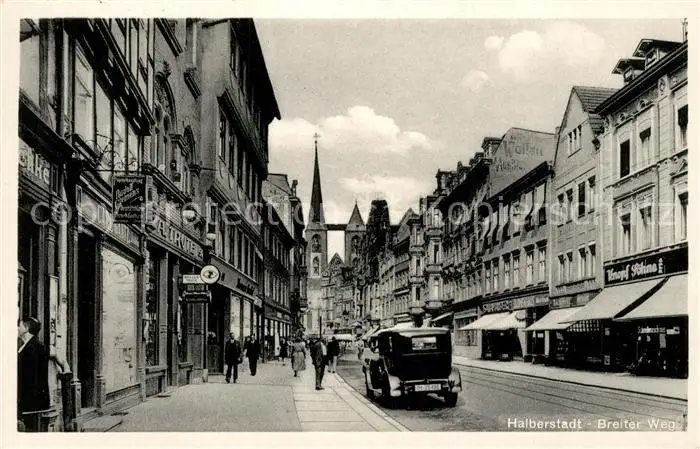 Halberstadt Kategorie Alte Ansichtskarten Postkarten bx44742 Halberstadt Breiter Weg Halberstadt postalisch gelaufen 1934 Erhaltung siehe scans [NatalD47]