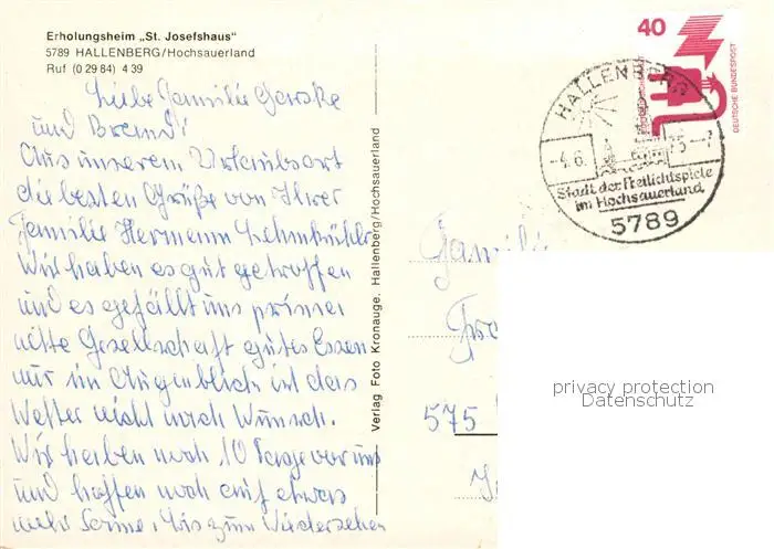 Hallenberg Erholungsheim St Josefshaus Hallenberg postalisch gelaufen 1975 Erhaltung siehe scans [WerneD78] WernPID7