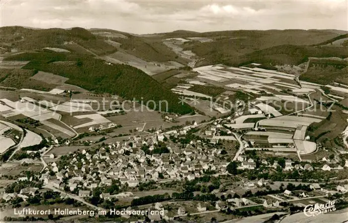 Hallenberg Panorama Luftkurort Hallenberg postalisch gelaufen 1961 Fliegeraufnahme Erhaltung siehe scans [FriedD77] Fliegeraufnahme Frierer