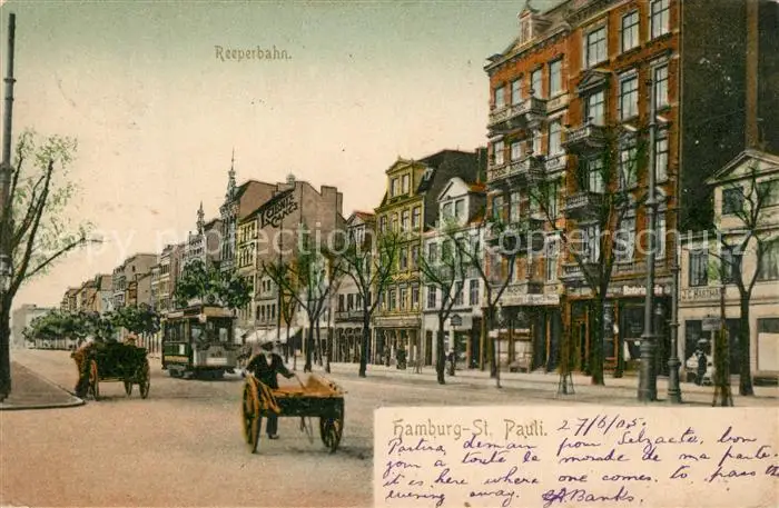 Hamburg Reeperbahn Strassenbahn Hamburg postalisch gelaufen 1905 Erhaltung siehe scans [LiesaD40] LiesID40