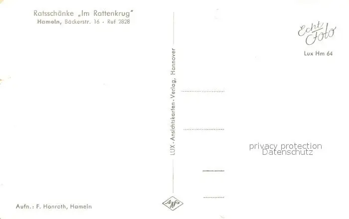Hameln_Weser Der Rattenfaenger Ratsschaenke Im Rattenkrug Hameln Weser postalisch nicht gelaufen 1921-1965 Erhaltung siehe scans [WerneD78] WernPID7