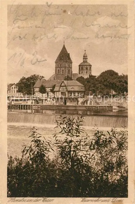 AK / Ansichtskarte Hameln_Weser Weserwehr und Dom Hameln Weser