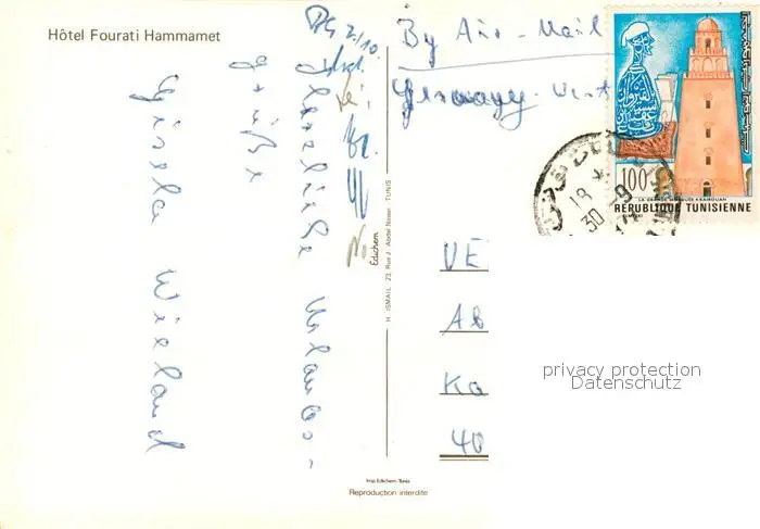 Hammamet Hotel Fourati Hammamet postalisch gelaufen nach 1965 Erhaltung siehe scans [KathaD81] Kathoren