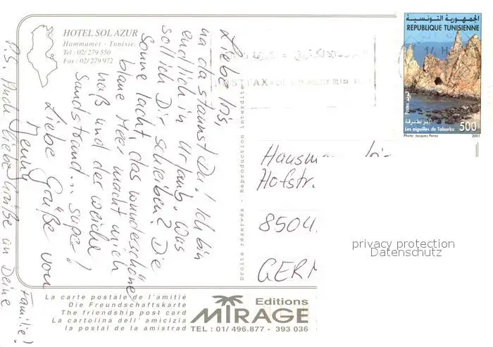 Hammamet Hotel Sol Azur Swimming Pool Hammamet postalisch gelaufen 2001 Erhaltung siehe scans [FriedD77] Frierer