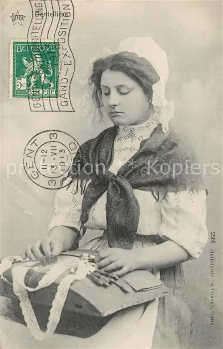 Handarbeit Spitzenkl?pplerin Exposition Gand postalisch gelaufen 1913 Erhaltung siehe scans [PaolaD17] PaolPID1