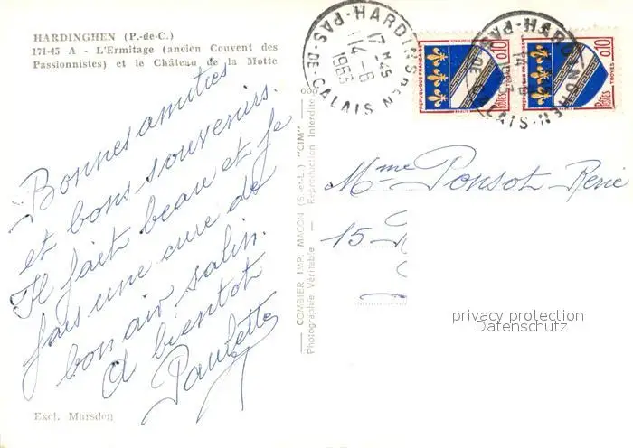 Hardinghen Ermitage et Château de la Motte vue aérienne Hardinghen postalisch gelaufen 1963 Erhaltung siehe scans [FriedD77] Frierer