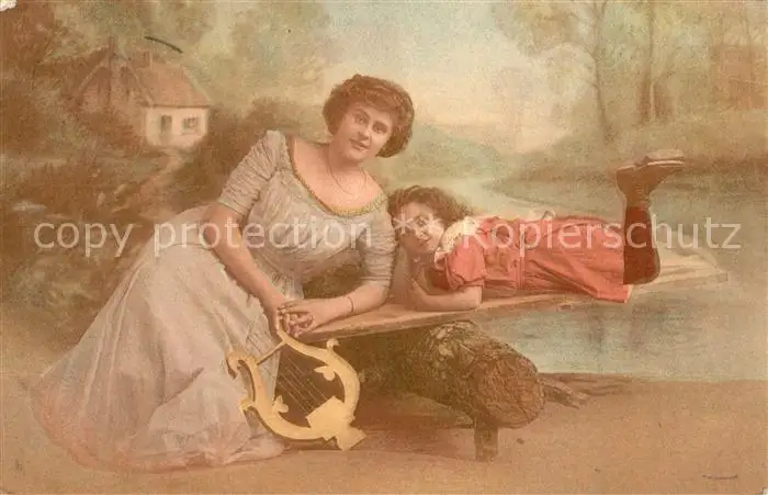 AK / Ansichtskarte Harfe Frau Kind Harfe