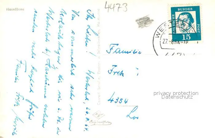 Haseluenne Partie am Wasser Haseluenne postalisch gelaufen 1964 Erhaltung siehe scans [FriedD77] Frierer