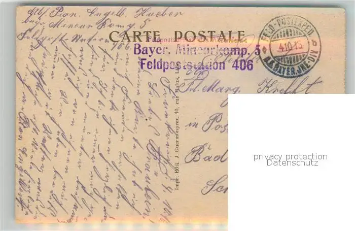Haubourdin Place Sadi Carnot Haubourdin postalisch gelaufen 1915 Feldpostexpedition (Stempel) Erhaltung siehe scans [WerneD78] Feldpostexpedition (Stempel) WernPID7