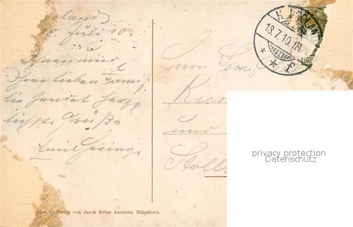 Helgoland Westkueste bei Sturm Helgoland postalisch gelaufen 1910 Erhaltung siehe scans [FriedD77] Frierer