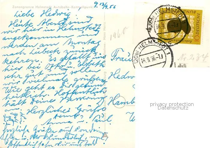 Helmstedt Zonengrenze Autobahn Kontrollpunkt Helmstedt postalisch gelaufen 1956 Erhaltung siehe scans [WerneD78] WernPID7