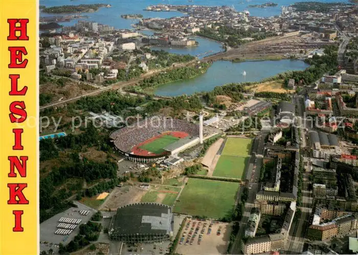 Helsinki Ansicht mit Olympiastadion Helsinki postalisch nicht gelaufen nach 1965 Fliegeraufnahme Erhaltung siehe scans [FriedD77] Fliegeraufnahme Frierer