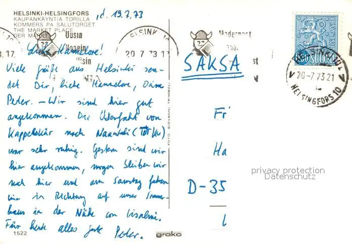 Helsinki Markt Helsinki postalisch gelaufen 1973 Erhaltung siehe scans [WerneD78] WernPID7