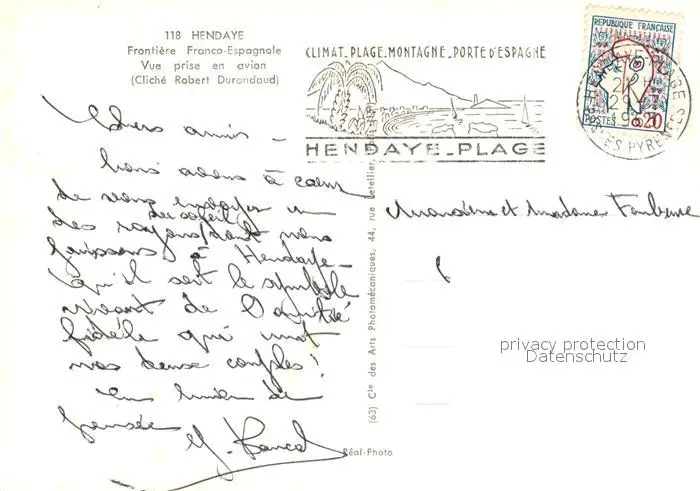 Hendaye_Pyrenees_Atlantiques Frontière Franco Espagnole vue aérienne Hendaye_Pyrenees postalisch gelaufen 1963 Erhaltung siehe scans [FriedD77] Frierer